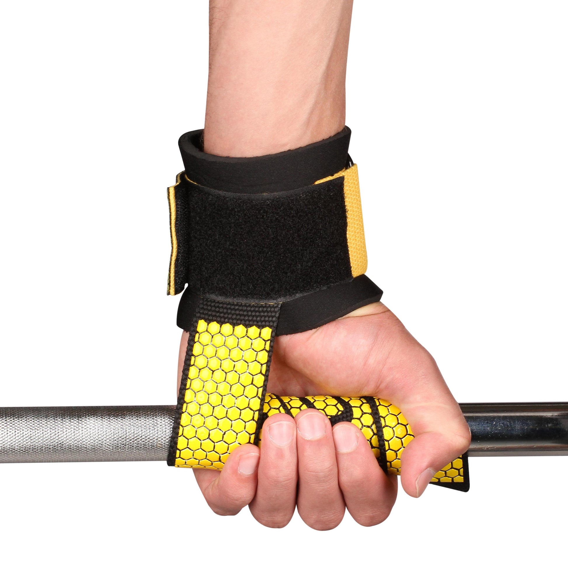 Muñequera de Levantamiento de Pesas con Peso Muerto (Par) INDIGO Negro - Amarillo